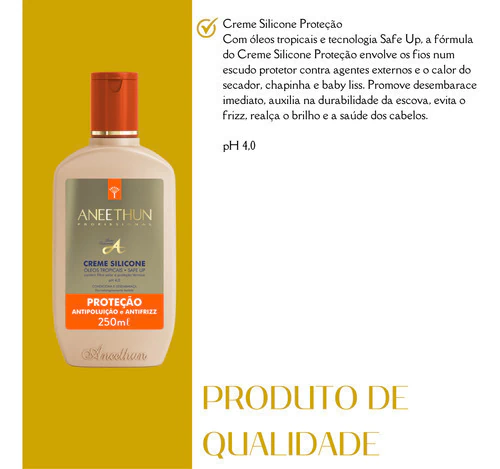 O Creme de Silicone Antifrizz Aneethun 250ml é a solução perfeita para quem busca controle absoluto do frizz, proteção térmica e fios mais disciplinados.