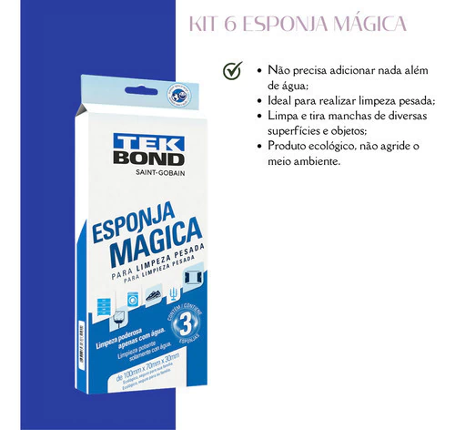 Indicada para uso doméstico ou profissional, a esponja mágica Tekbond tem um excelente custo-benefício, oferecendo qualidade, durabilidade e versatilidade em uma embalagem econômica.